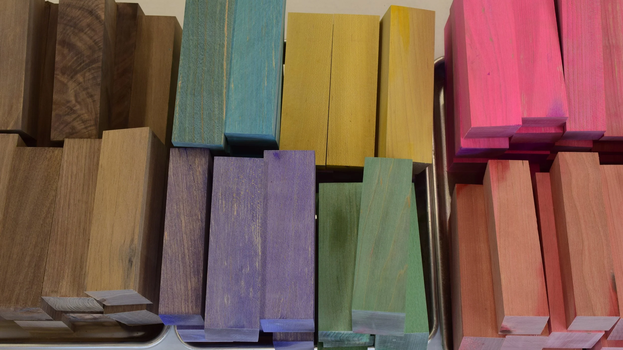 Producing quality, consistent solid hardwood materials for your knife making needs. Repeatable, bulk materials for large runs. Dyed, straight grain, and figured.